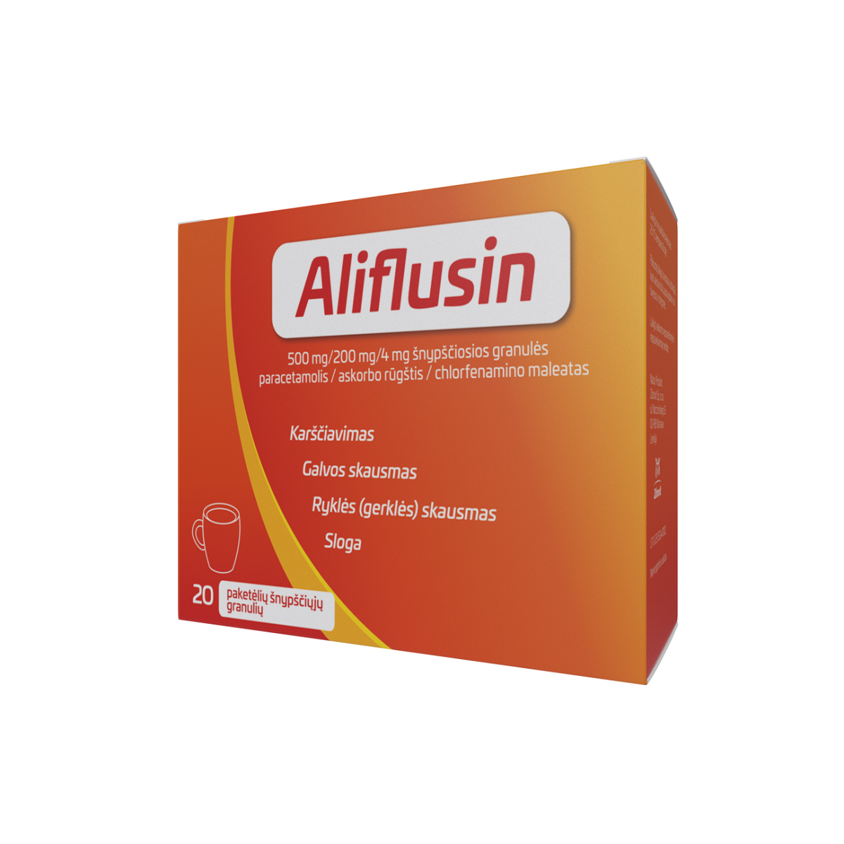 Aliflusin 500 mg/200 mg/4 mg šnypščiosios tabletės