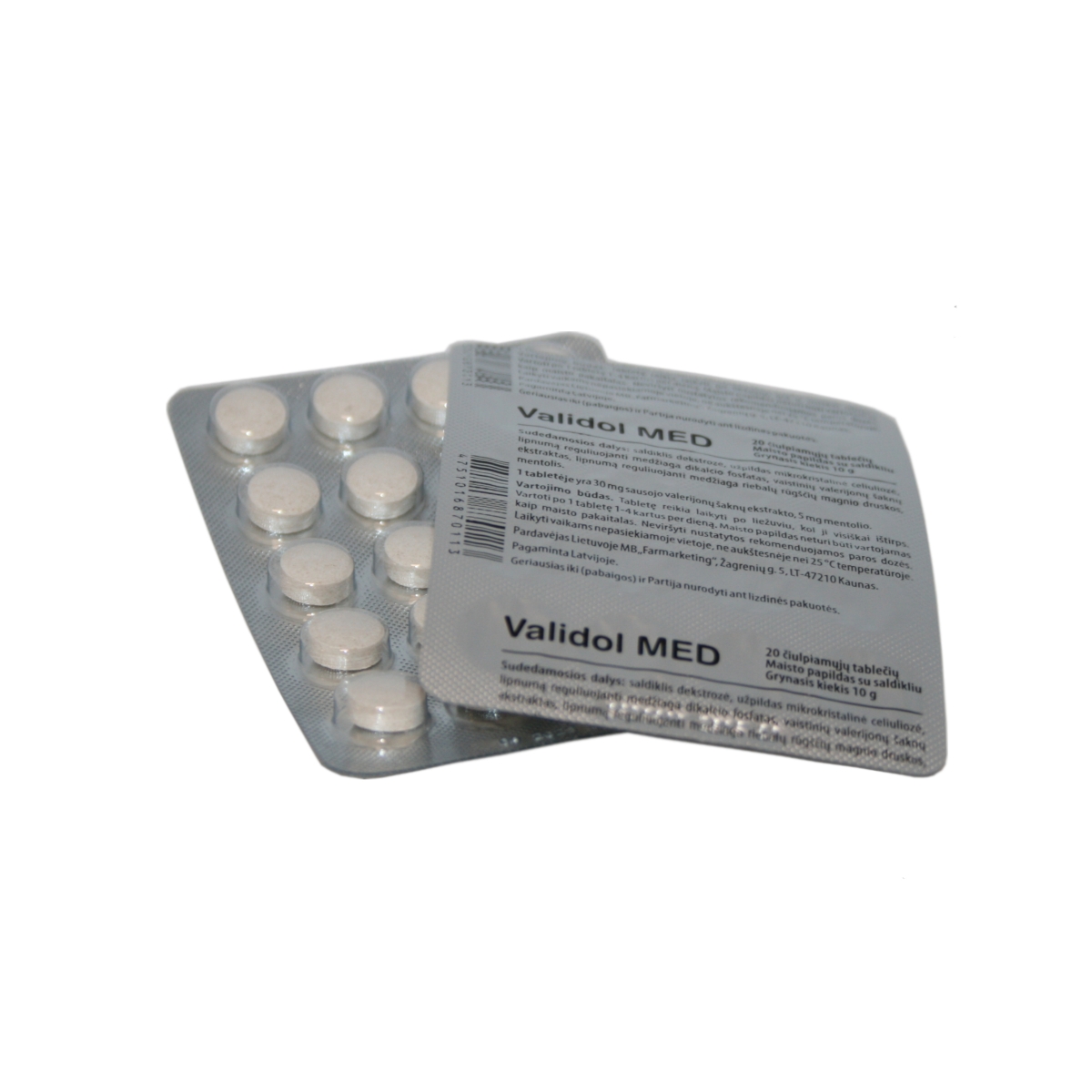 1 (4) tabletėje yra 30 (120) mg sausojo valerijonų šaknų ekstrakto, 5 (20) mg mentolio.